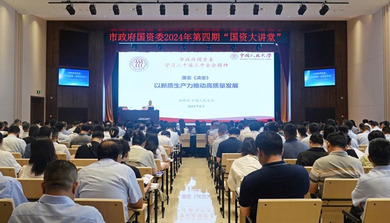 黨的二十屆三中全會擘畫了進一步全面深化改革、推進中國式現代化建設的新藍圖,黨中央、省委、市委要求切實抓好黨的二十屆三中全會精神的學習宣傳和貫徹落實。8月13日上午,市政府國資委在鄭州水務集團有限公司智慧水務中心舉辦2024年第四期“國資大講堂”,邀請中國人民大學黨委常委、副校長鄭新業(yè)教授圍繞《學習黨的二十屆三中全會精神 以新質生產力推動高質量發(fā)展》作專題輔導。